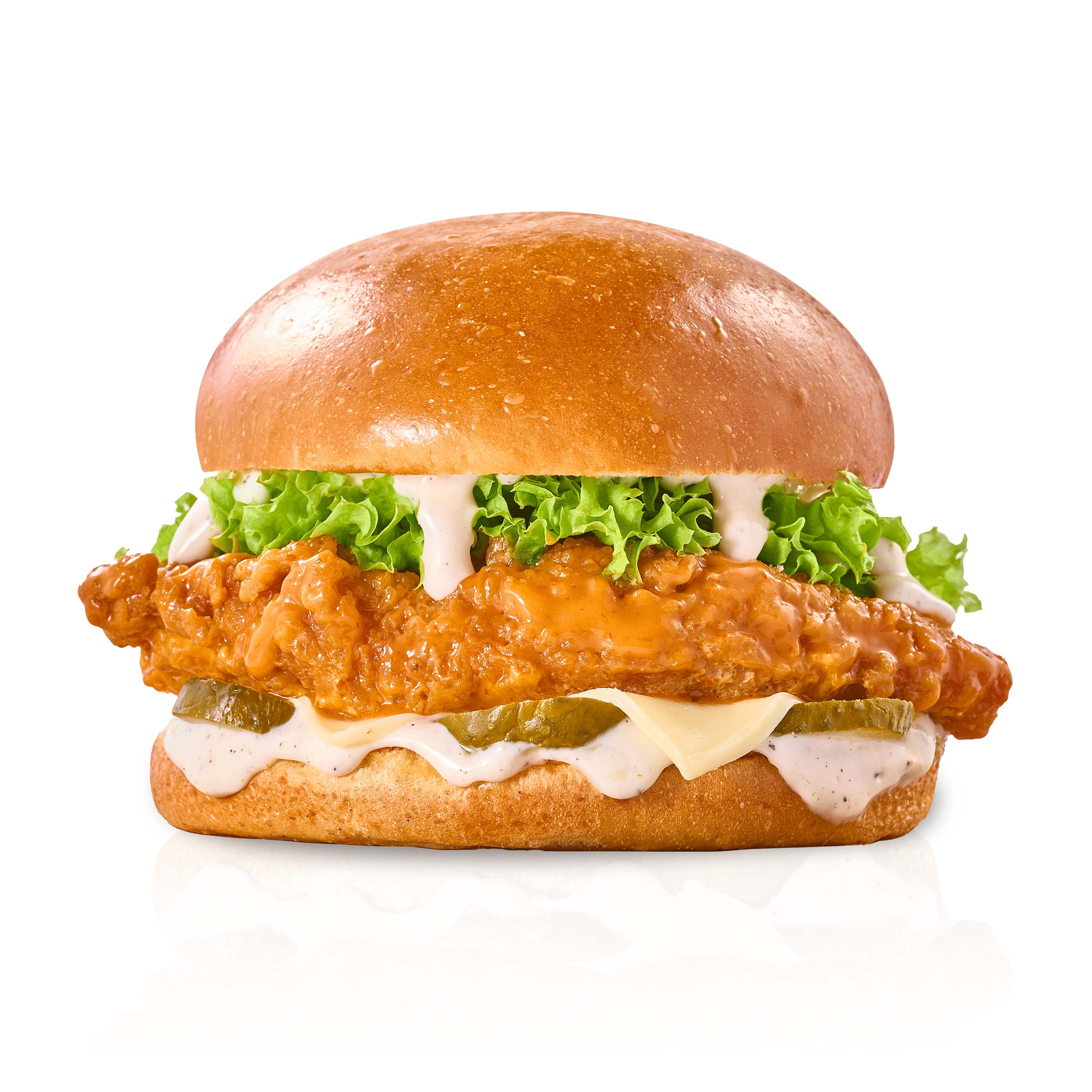 Crispy chicken dipped in buffalo sauce, cheddar cheese, ranch, lettuce, and pickles.